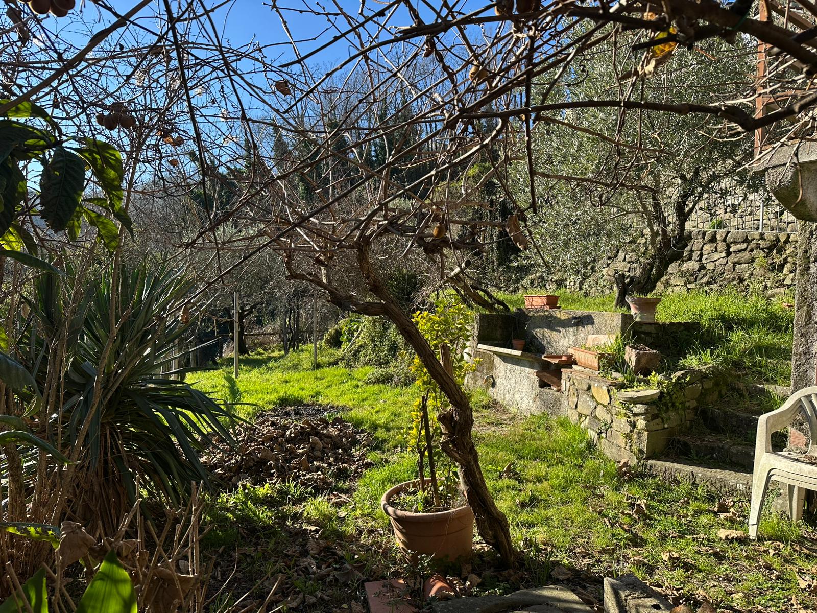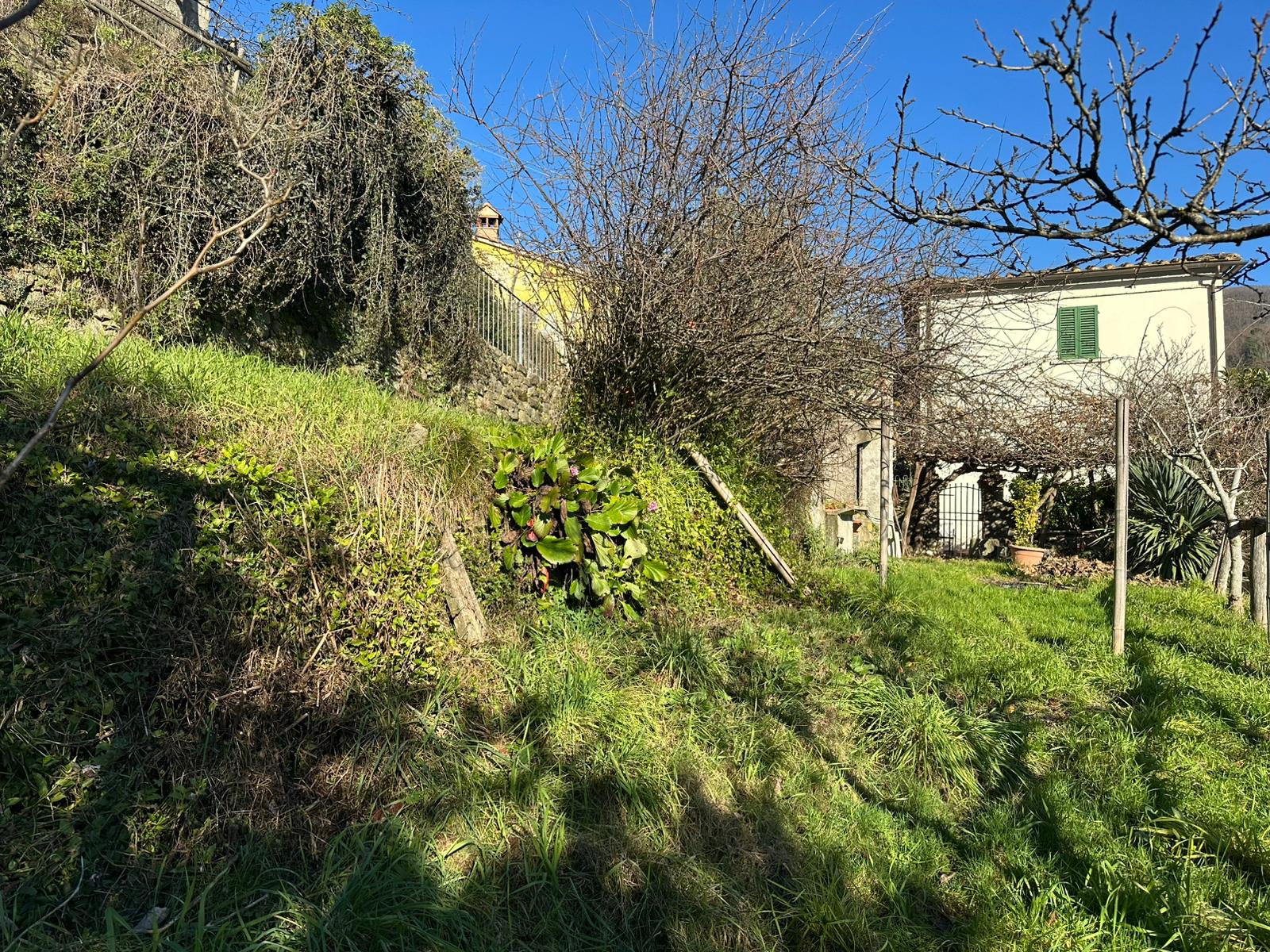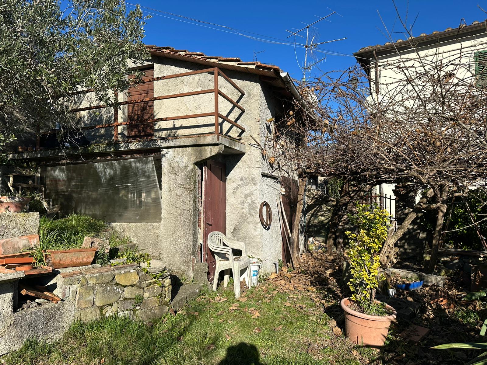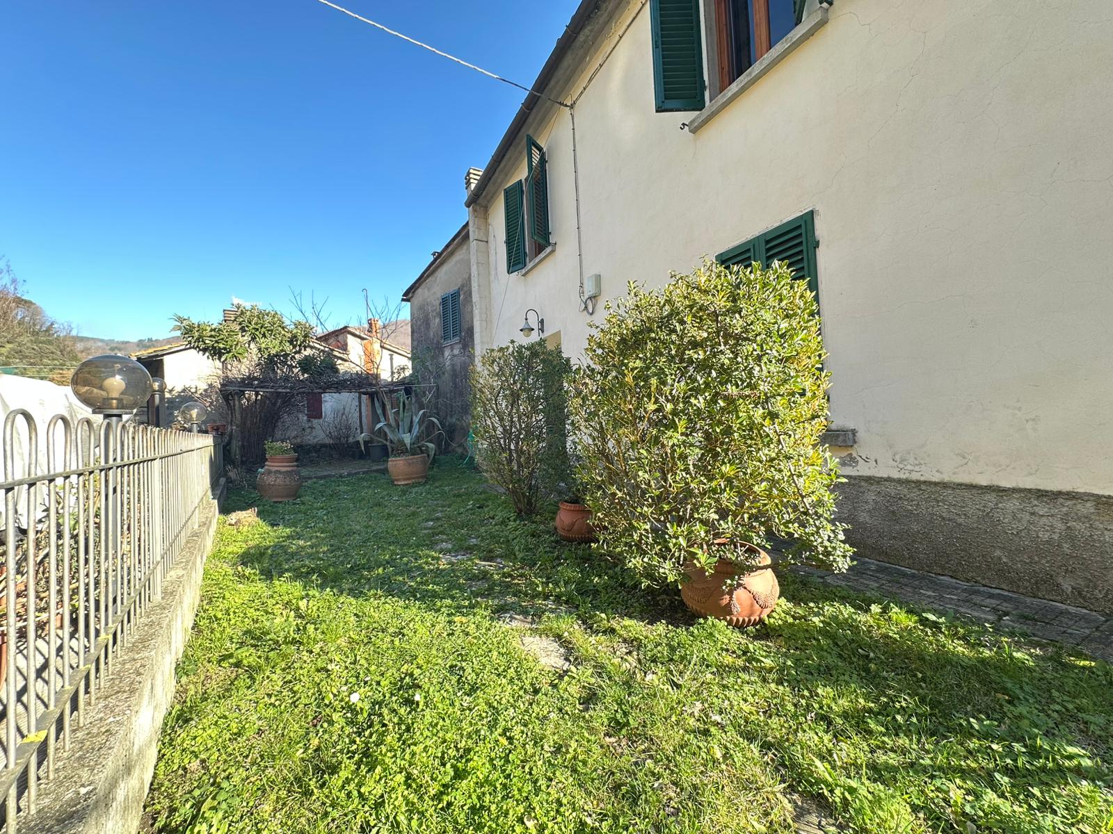 Località Campomaggio-Montagnana, casa indipendente in borgo collinare con vista panoramica. L'immobile è di ampia metratura, circa 300 mq totali, e composto da un'abitazione principale con giardino frontale, disposta su due livelli oltre a locali deposito e taverna al piano seminterrato, e da una unità abitativa secondaria di piccola metratura, anch'essa con ingresso autonomo, adatta anche per essere messa a reddito. A breve distanza dall'abitazione principale si trova un ampio spazio verde di proprietà con annesso locale ad uso deposito/lavanderia, facilmente trasformabile come annesso rustico a servizio dell'area verde. Completano la proprietà due autorimesse e un posto auto, oltre a vari appezzamenti di terreno boschivo e due piccole particelle a olivi.