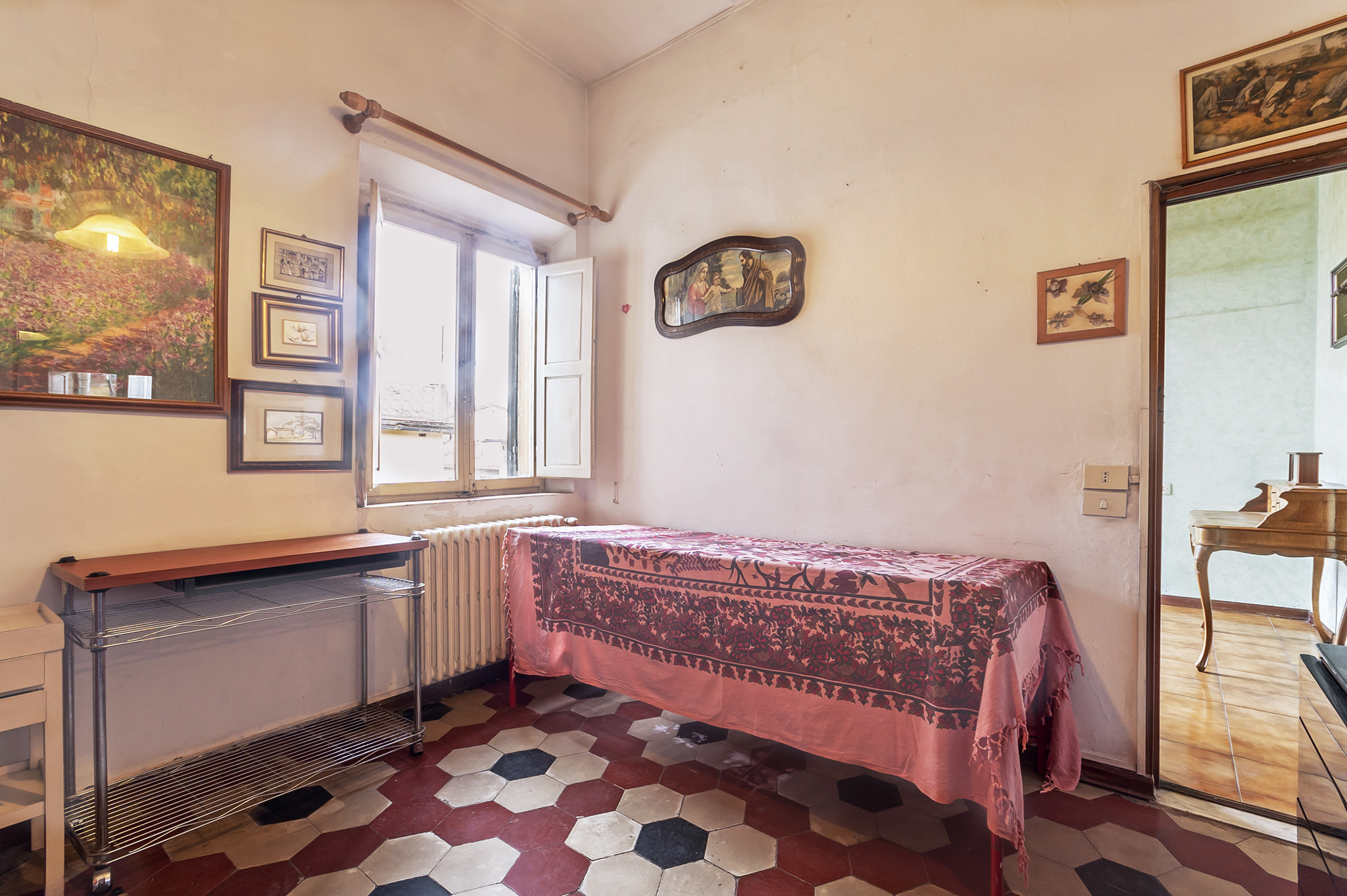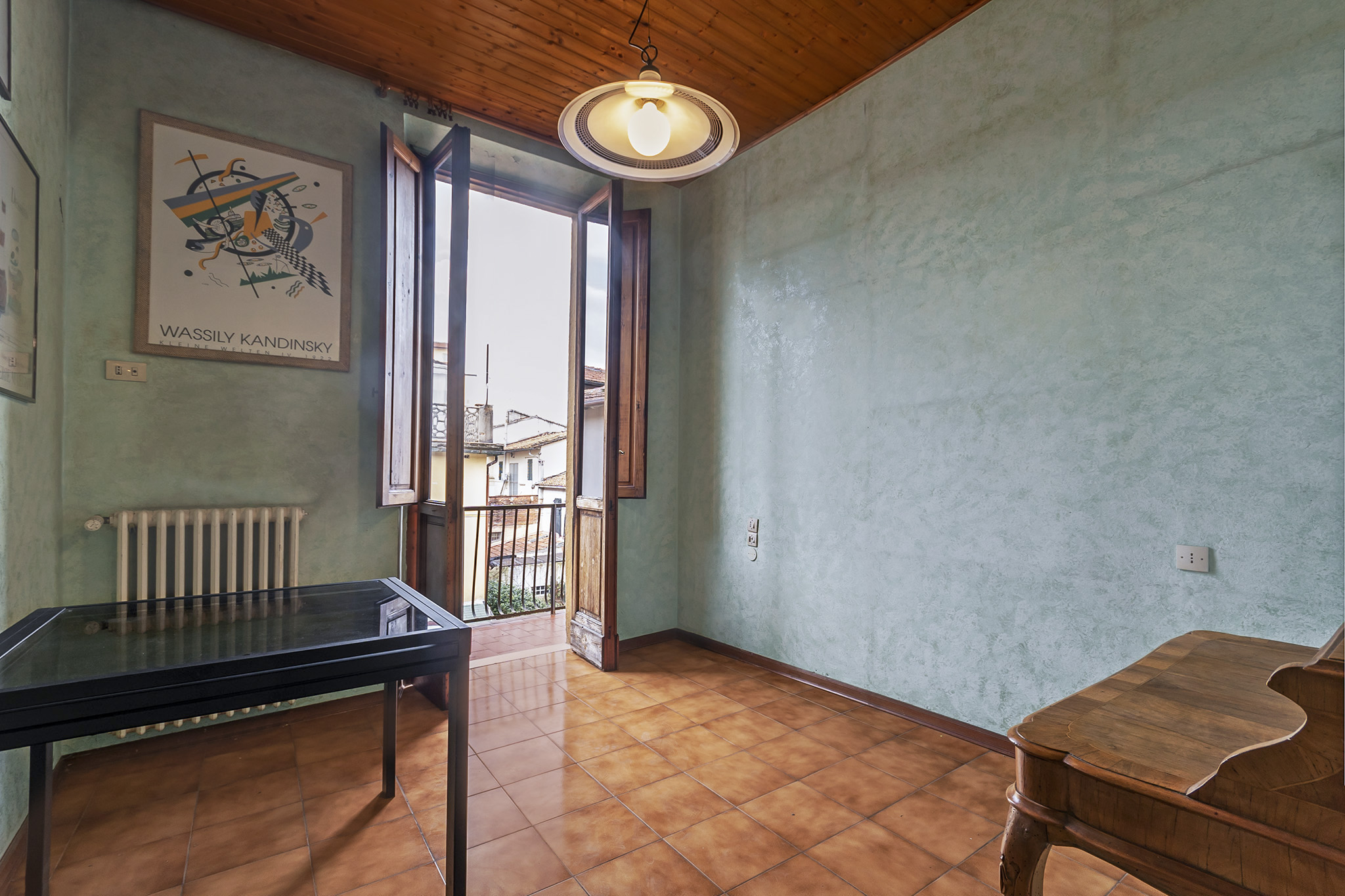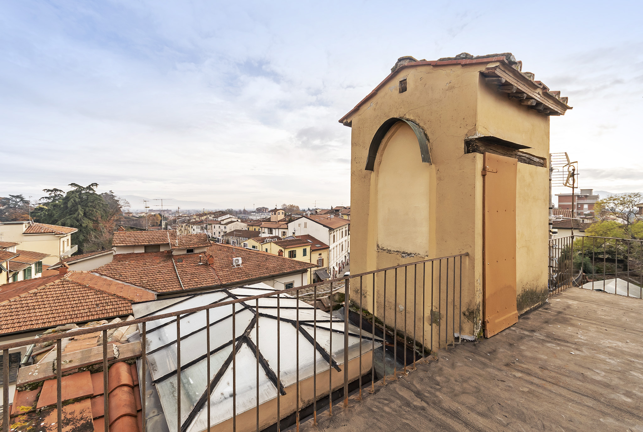 L’ingresso conduce a un soggiorno particolarmente luminoso, caratterizzato da una grande vetrata originale affacciata sulla corte interna, elemento distintivo che conferisce personalità agli ambienti. A completare la zona giorno è presente un cucinotto funzionale, mentre la zona notte si compone di tre camere da letto e due bagni. L’immobile si presenta in condizioni abitabili ed è dotato di riscaldamento e impianti autonomi. Attraverso collegamento diretto dall’abitazione si accede al piano superiore, dove si trova una soffitta di 116 mq suddivisa in tre ampi vani con ottimi spazi praticabili, ideale per molteplici utilizzi aggiuntivi. Dal livello superiore si raggiunge infine una terrazza panoramica esclusiva di 12 mq, che offre una vista suggestiva sul centro storico e sulle colline circostanti, rappresentando un valore raro e di pregio. La proprietà gode di una posizione strategica, a pochi minuti a piedi dalla stazione ferroviaria e vicina a tutti i servizi del centro, oltre a garantire un agevole accesso al raccordo autostradale. Un appartamento che unisce spazi generosi, comfort e caratteristiche architettoniche di pregio, ideale per chi cerca una soluzione unica nel suo genere in una delle zone più richieste della città.